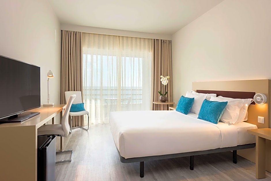 Contemporary twin room with absolute ocean front view and private balcony, ideal to relax and unwind. With free Wi-Fi, free buffet breakfast, air conditioning/heating, table and chairs, soundproof, LCD TV, telephone, safe, minibar and bathroom with a bathtub, TRYP bathroom amenities and a hairdryer